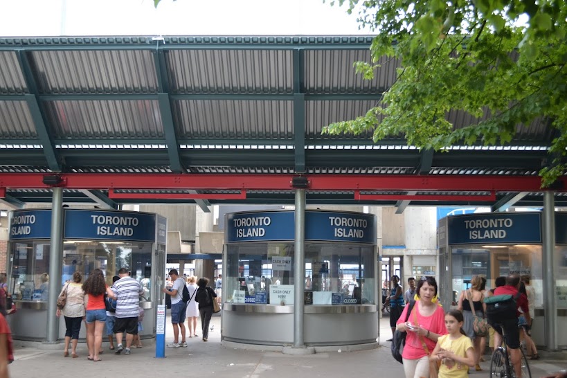 Добраться туда можно на парома в течении 10 минут (паромы ходят в трех направлениях см. карту). Стоит туда и назад съездить на одного взрослого — $7, детский дешевле, но не помню точно сколько. Подробнее расписание и расценки можно посмотреть на Сайте города. Собственно паром находится на набережной Queen's Quay между Bay str и Yonge str. Вот так выглядит вход на причал где можно сесть на паром. В обратную сторону переправа бесплатная.