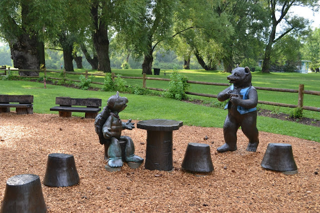 Для самых маленьких детей стоит отметить парк Franklin Children's Garden — по мотивам популярной тут детской сказки про черепашку Франклина. Я сказку не читал, но судя по всему она состоит из нескольких эпизодов, в каждом из которых главный герой Франклин знакомился с новыми друзьями и сталкивался с какими-то заданиями. Эти эпизоды создатели парка и пытались воссоздать в композициях и скульптурах. Выглядит это очень впечатляюще